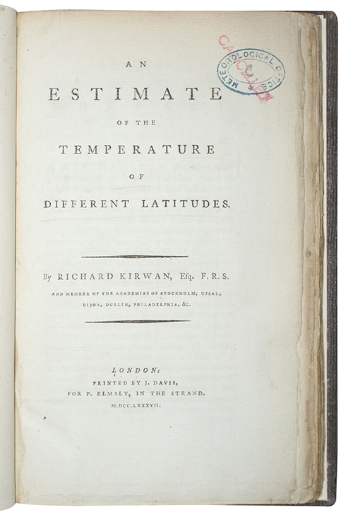 viii, 114pp. Later brown cloth with gilt title to spine. Armorial bookplate of the Meteorological Office London to FEP, with ink stamp of same to title. Lightly rubbed.