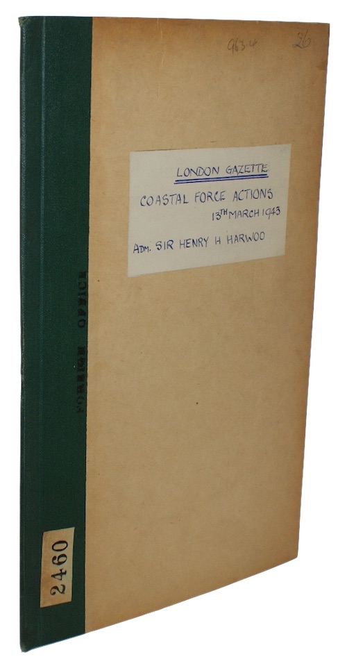 An ex-Foreign Office Library copy of a supplement to The London Gazette - one of the official journals of record of the British Government - published on 18th October 1948, recording despatches submitted to the Lord Commissioners of the Admiralty by Admiral Sir Henry H. Harwood regarding Royal Navy Coastal Force manoeuvres and engagements in 1943.