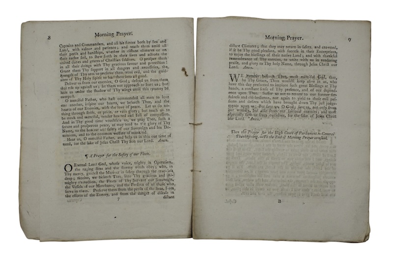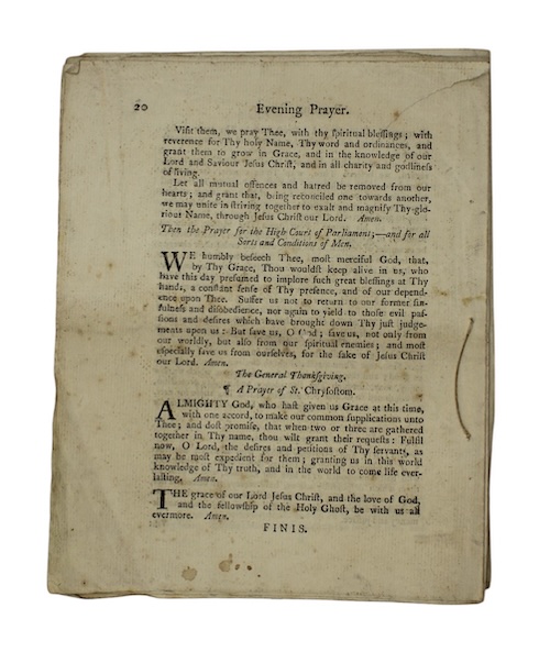 A liturgy, issued by proclamation of George III, of services to be held during a day of reflection and prayer in honour of the military forces of both the Royal Navy and British Army deployed on the continent during the Napoleonic Wars.