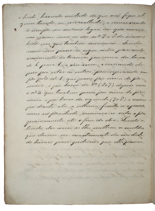 Explicit: 'Sendo o tecido dos arcos se lhe metlem os moldes que divem seer soastamenta da midida de buraco para poderum por elle pasar.'