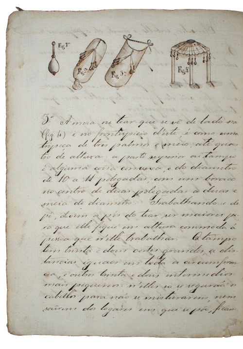 An apparently eighteenth-century Portuguese manuscript on pillow- or bobbin-lace making; detailing the varying intricate patterns and their execution, with detailed descriptions of the materials and implements employed in manufacture.