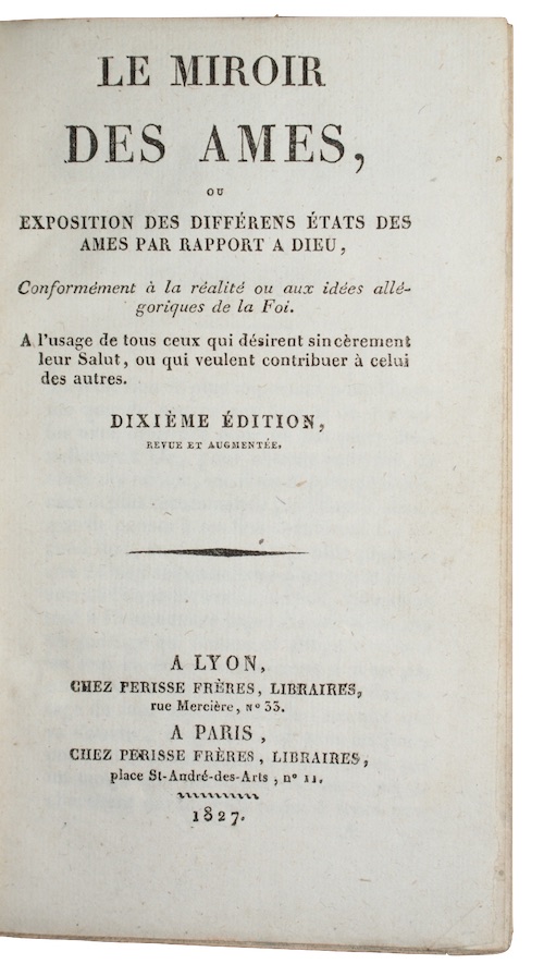 Le miroir des ames, ou exposition des differens etats des ames par rapport a dieu, conformement a la realite ou aux idees allegoriques de la Foi...