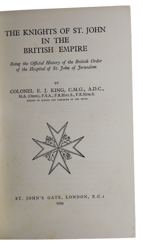 A remarkably handsome copy of an authoritative history of the Grand Priory in the British Realm of the Most Venerable Order of the Hospital of St. John of Jerusalem.