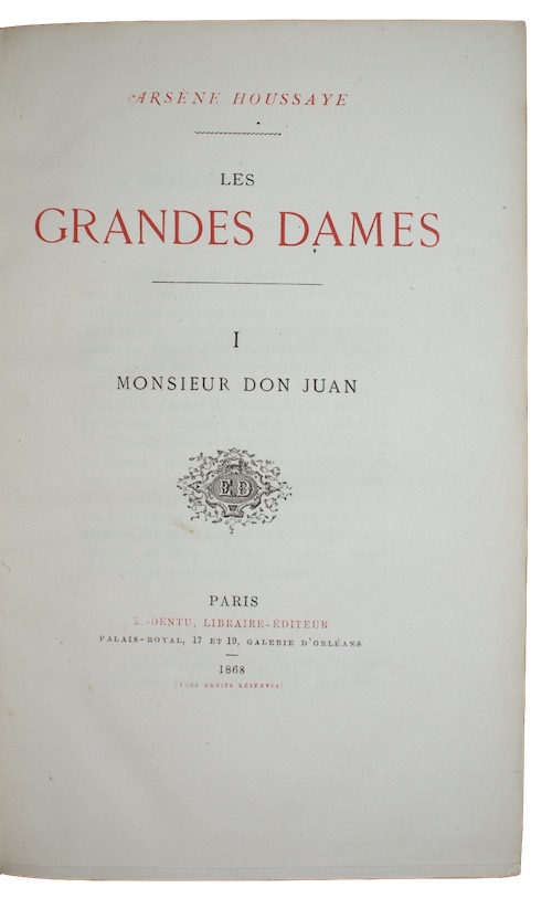 The first edition Arsene Houssaye's (1815-1896) historical novel which, despite the title, is centred around Octave de Parisis, a male protagonist and libertine in the mould of Don Juan, and his sexual conquests.