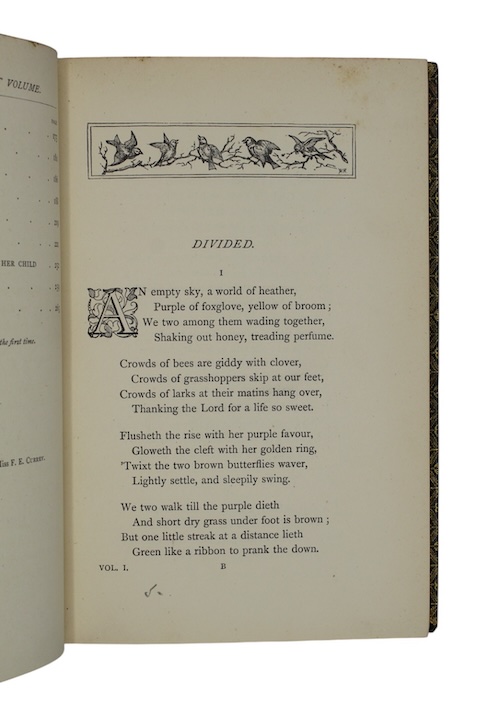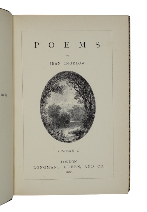 A revised edition, will additional material, of the collected verse of Jean Ingelow (1820-1897). First printed in 1863, Poems brought the author immense critical and commercial success, and ran to 30 editions in her lifetime.