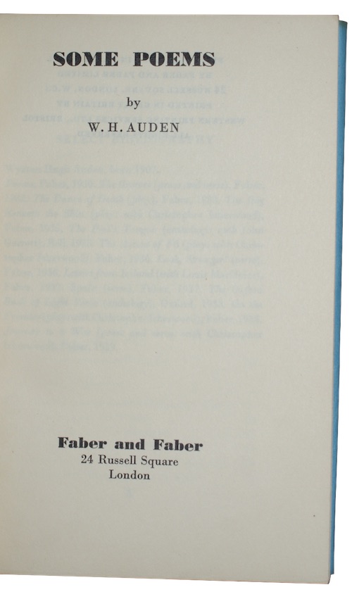 The first edition of an early compilation of poems by W. H. Auden selected from previous publications including, The Orators (1932), The Ascent of F6 (1936), and Journey to a War (1939).