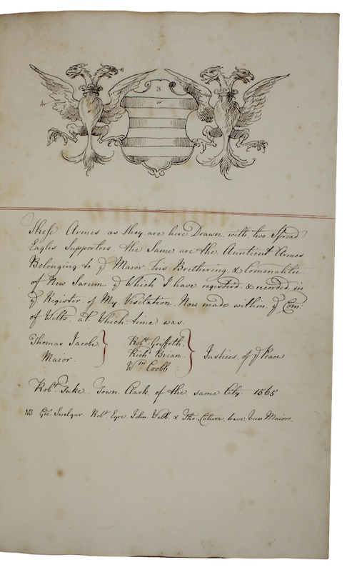Conducted throughout the reigns of Henry VIII, Elizabeth I and later Stuart monarchs, heraldic visitations were tours of inspection undertaken by senior officers of arms to regulate the use of coats of arms - the abuse of which had become widespread by the fifteenth and sixteenth centuries - and to record genealogical pedigrees. The 1565 visitation represented the second of four inspections of Wiltshire (the others were undertaken in 1530, 1623 - by William Camden - and 1677).