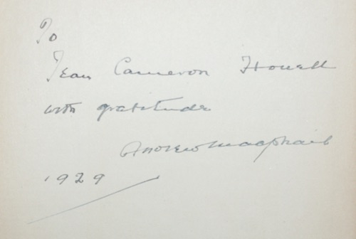 346pp. Original publisher's navy cloth. Lightly rubbed. Bookplate of William Boyman Howell to FEP. Presentation copy, inked inscription to recto of FFEP: 'To / Jean Cameron Howell / with gratitude / Andrew Macphail'.