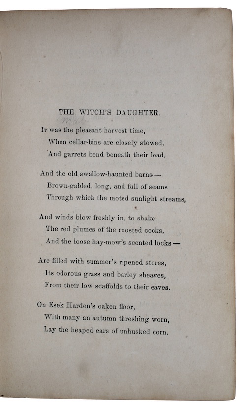 The second edition of American Quaker fireside poet, and advocate of the abolition of slavery, John Greenleaf Whittier's (1807-1892) seventh poetry collection, many of which deal with untimely deaths in his immediately family.