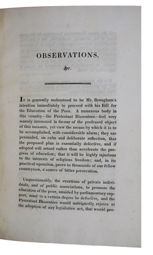 Observations on Mr. brougham's bill "for better providing the means of education for his majesty's subjects;" shewing it's inadequacy to the end proposed, and the danger which will arise from it to the causes of religious liberty.