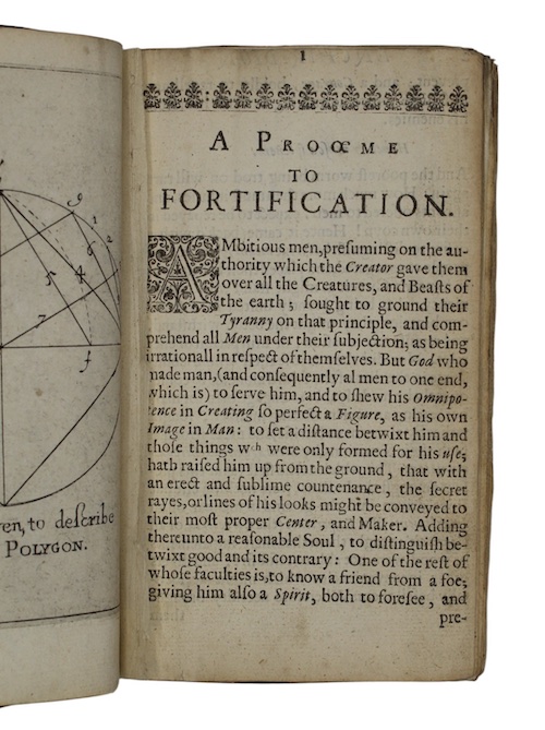 The first edition of a profusely illustrated treatise of military fortification, commonly attributed to sculptor, master mason, and architect Nicholas Stone (1585x8-1647); likely compiled whilst imprisoned due to his Royalist sympathies using Hexham's translation of Marolois as his primary source.