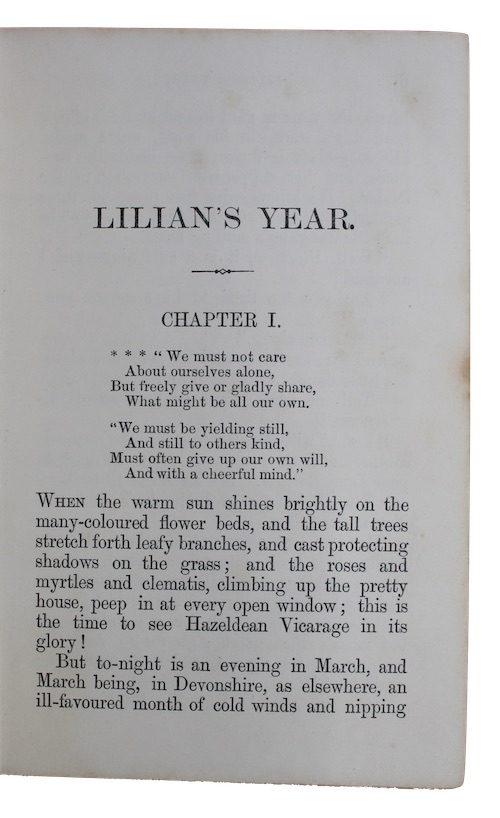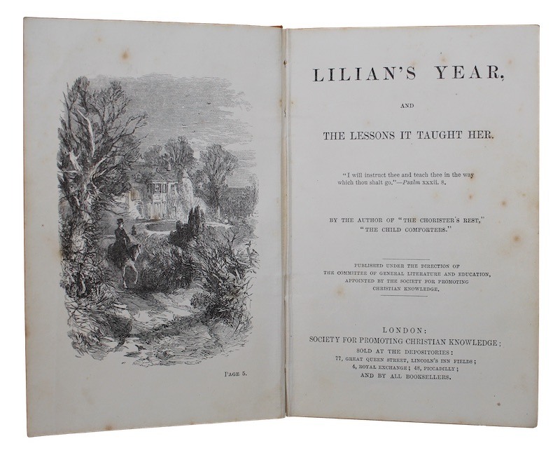 The first edition, in original state of a rare conduct of life tale for children produced by the Society for Promoting Christian Knowledge under the direction of the Committee of General Literature and Education. The identity of the anonymous author has not been established, two previous titles are attributed to them, Arthur; or, The chorister's rest and The child comforters, both published by SPCK.