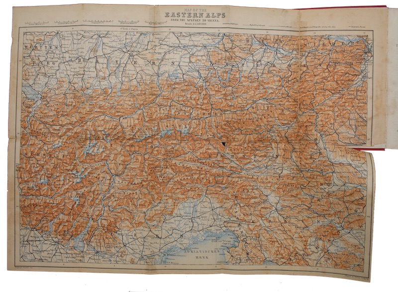 571pp, [1]. With 53 maps, 10 plans, and seven panoramas. Original publisher's blind-ruled red cloth, lettered in gilt, marbled edges. Extremities rubbed and spotted, spine sunned. Later bookplate of George Lowe, beneath earlier inked ownership inscriptions, to FFEP, small holes and tape repairs to initial map.