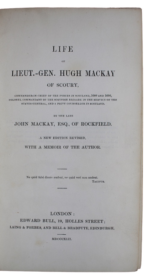 A revised edition of a biography of Hugh Mackay (d. 1692), commander-in-chief of the forces in Scotland, 1689 and 1690, colonel commandant of the Scottish brigade in the service of the States General, and a Privy Counsellor in Scotland.