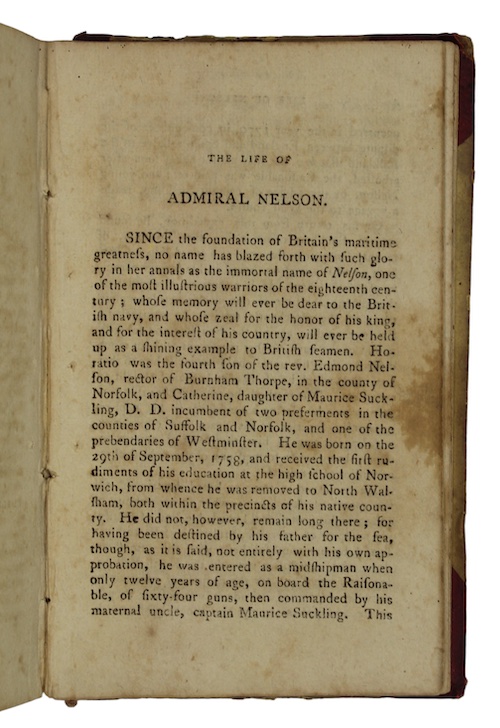An apt paring of scarce early American imprints of succinct anonymous biographies of Lord Nelson and Napoleon Bonaparte; given the small format likely intended for a juvenile audience.