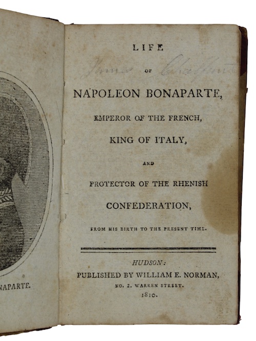 [Bound with:] Life of napoleon bonaparte, emperor of the french, king of italy, and protector of the rhenish confederation, from his birth to the present time. Hudson [New York]. Published by William E. Norman, 1810. 108pp. With a wood engraved frontispiece.