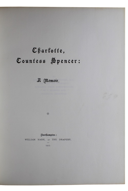 The sole edition of Frederick Seymour's succinct biography of his sister Charlotte Frances Frederica Seymour, Countess Spencer (1835-1903), an active philanthropist, notable for her involvement with the Ladies Diocesan Association, an exclusive aristocratic organisation devoted to assisting the poverty-stricken residents of London, and the Parochial Mission- Women Association focused on providing resources to parishes located in the East End. The present copy is inscribed by Lady Spencer's husband John Poyntz Spencer, fifth Earl Spencer (1835-1910), Liberal politician, friend of Prime Minster Gladstone, and twice Lord Lieutenant of Ireland.