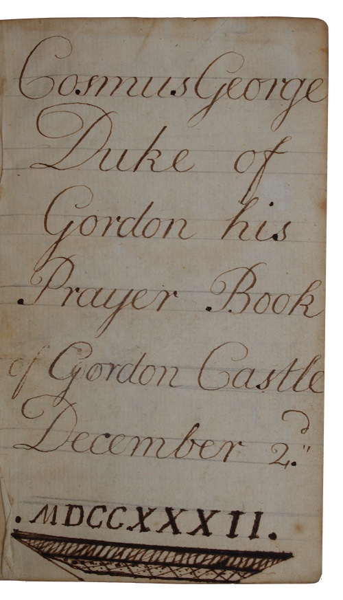 Unpaginated. Contemporary gilt-tooled sheep. Extremities heavily worn, joints split, loss to head of spine. Marbled endpapers, contemporary armorial bookplate to FEP and inked ownership inscription to front blank fly-leaf of Cosmo George, Duke of Gordon.