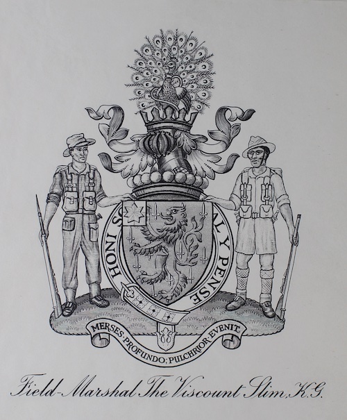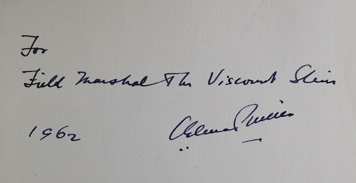 xi, [1], 434pp. With a frontispiece and 32 photographic plates, and 19 diagrams and maps in the text. Original publisher's black cloth, lettered in gilt. Without dustwrapper. Lightly rubbed, marked, and bumped. Internally clean and crisp. Armorial bookplate of Field Marshal Slim to FEP. Presentation copy, inked inscription to recto of FFEP: 'For / Field Marshal The Viscount Slim / C. E. Lucas / 1962'.