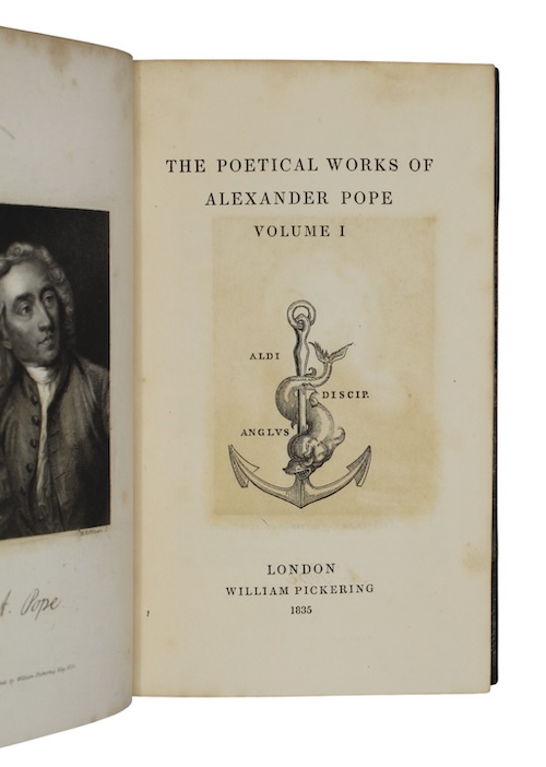 A handsomely bound set of the Aldine edition of Pope's poetry.