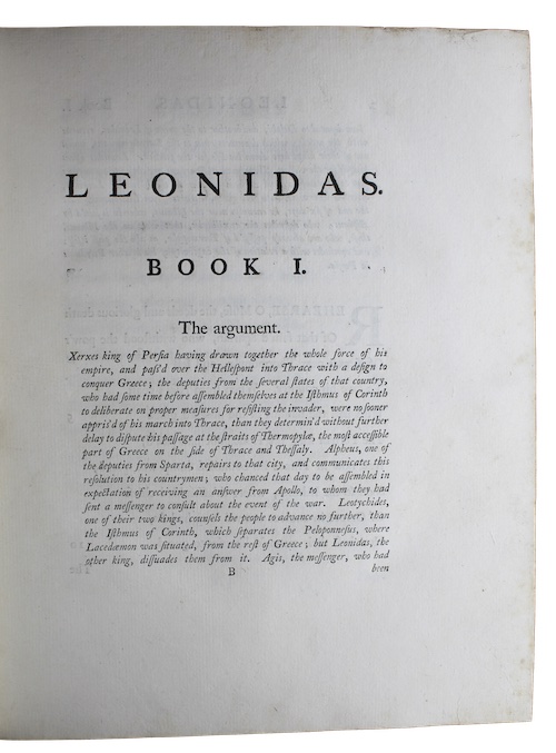 The first edition, large and fine paper issue, of Richard Glover's (1712-1785) celebrated epic poem in praise of liberty.