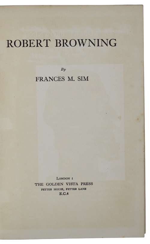 The first edition of Frances Mary Sim's literary biography of poet and playwright Robert Browning (1812-1889).