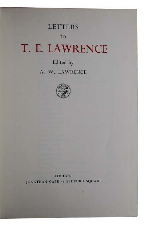 The first edition of a collection of thirty-seven letters to T. E. Lawrence from a variety of correspondents including Churchill, Graves, Forster, Conrad, Kipling, Yeats and others.