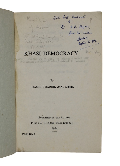 Published by the Author, Printed at Ri Khasi, 1964.