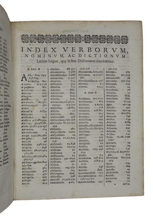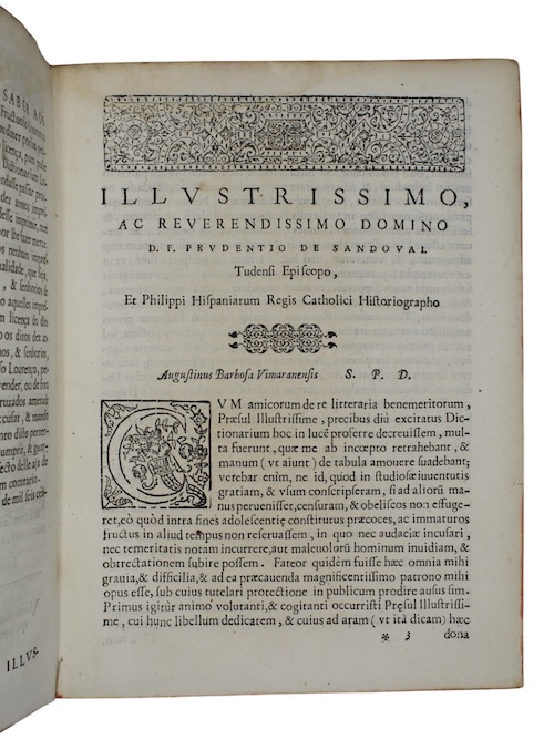 A choice copy of the first edition, printed in Braga, of what is commonly considered the second Portuguese-Latin dictionary, by Agostinho Barbosa (1589-1649), Portuguese lexicographer, jurist and Roman Catholic Bishop.