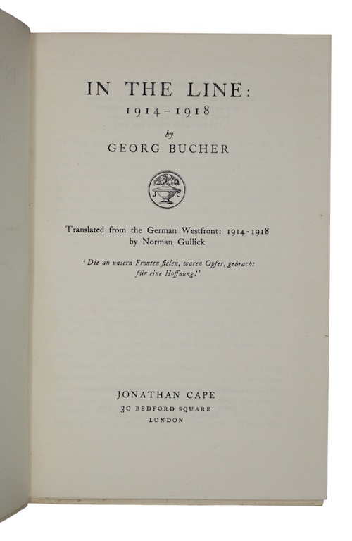 Georg Bucher was a German infantryman who, after joining up in 1914, served in the Marne, Ypres, Notre Dame de Lorette, the Vosges, Verdun, the Somme, Champagne, Chemin des Dames, Flanders, and back to Marne again. His direct experiences are recorded thus. Written as a private record, but eventually published in repost to an unnamed 'war-book which held up the German front-line soldier to the laughter of the world' (Bucher's introduction, dedicated to The Dead of Germany). He was the only one of his group of friends - with whom he saw through four years of warfare on the Western Front - to survive.