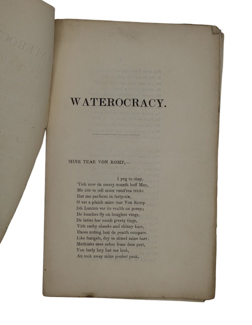 Waterocracy: a tale of fire. A letter to myneer von romp, merchant, rotterdam, from his friend sir david shylock, a. s. s. on his visit to the house of lords to oppose the new gass and water bills at the public expense. Translated from the german, and illustrated with two engravings by peter flint.