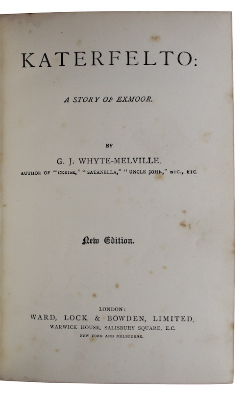 A handsomely bound copy of an early edition of Scottish author George John Whyte-Meville’s (1821-1878) sporting novel, set in the West Country during the eighteenth century, notable for its vivid stag-hunting scenes.