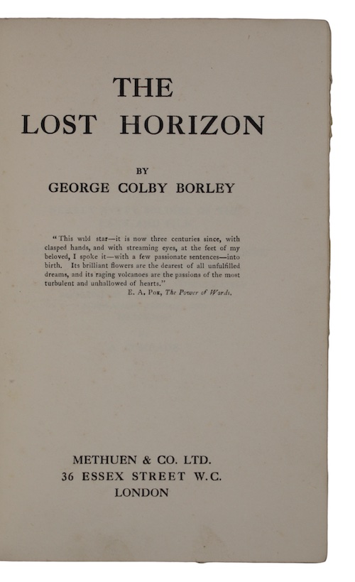 'Dedicated to nearly every soldier of the rank and file of the British, French, and American armies in France and Flanders... by a Comrade.' Gifted by the author to Henry Williamson. Not a great deal is known about the author, with only this title being attributed to a G. Colby Borley. A poem ‘Sapphic Ode’ appears in the June 1912 edition of The New Age journal under the initials G. C. H. Borley, which this copy is signed from, though there the trails runs cold. An existential mystery novel that follows the moral grapplings of protagonist 'Morales', and his shady cast of companions upon a cruise ship.