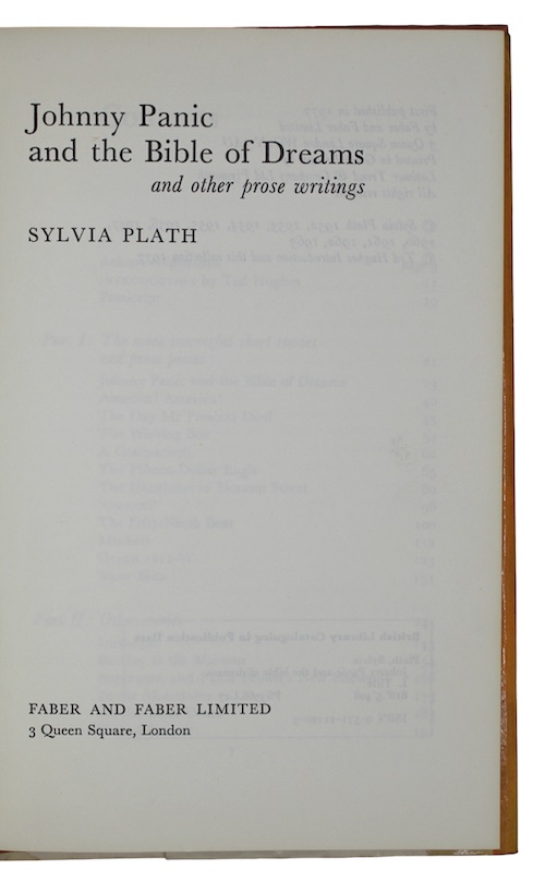 The first edition of a posthumous collection of Sylvia Plath's (1932-1963) prose writing, as compiled by her estranged husband Ted Hughes some fourteen years after her death. Presented in three parts; thirteen completed short stories, 6 further stories, and four diary excerpts.