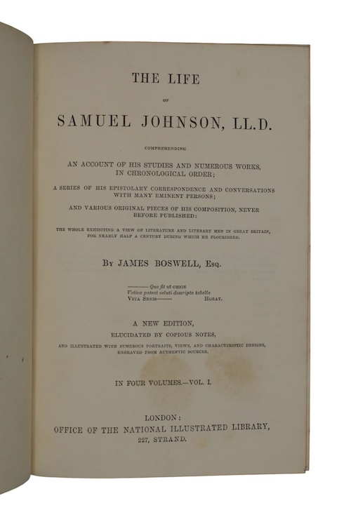 A new edition, finely bound and richly illustrated, of James Boswell's famous Life of Samuel Johnson, sometimes called the greatest biography in English.
