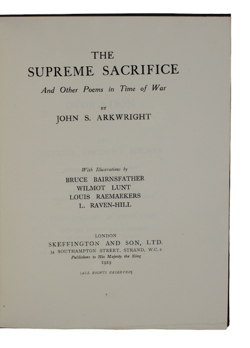 John Stanhope Arkwright (1872–1954), was a British Conservative politician, barrister, and poet. He attended Christ Church College, Oxford, where he was awarded the Newdigate Prize for poetry, resulting in this volume. He is best remembered for penning the WWI Hymn 'O Valiant Hearts', among others.
