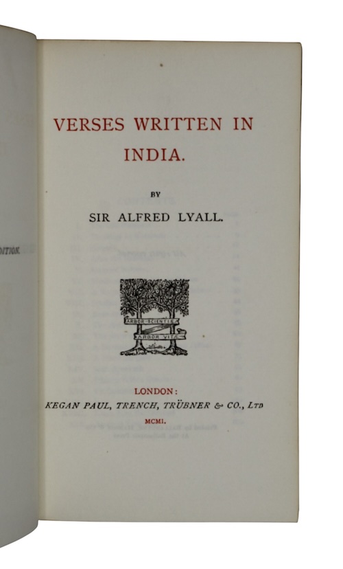 An uncharacteristically unadorned Worsfold binding of Sir Alfred Lyall's (1835-1911) remarkably popular collection of poems inspired whilst serving as an administrator in British India.