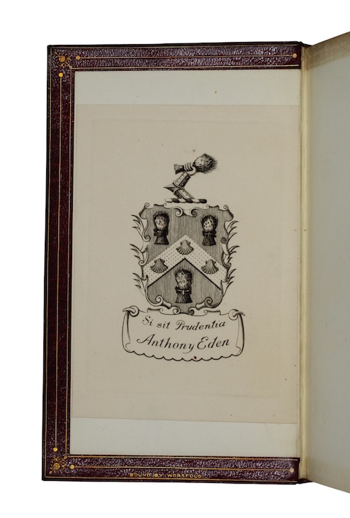 vi, 144pp. Title in red and black. Bound by Worsfold (stamp-signed on front turn-in) in contemporary red morocco, lettered in gilt to spine, A.E.G. Spine dulled. Armorial bookplate of Anthony Eden to FEP.