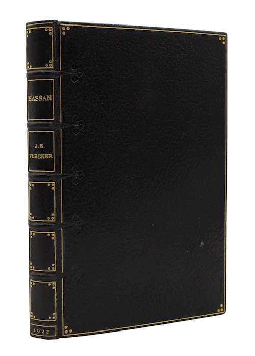 A handsome copy of the first edition of James Elroy Flecker's (1884-1915) remarkably successful five-act poetic drama. Hassan was performed to considerable critical acclaim, running for a staggering 281 performances.