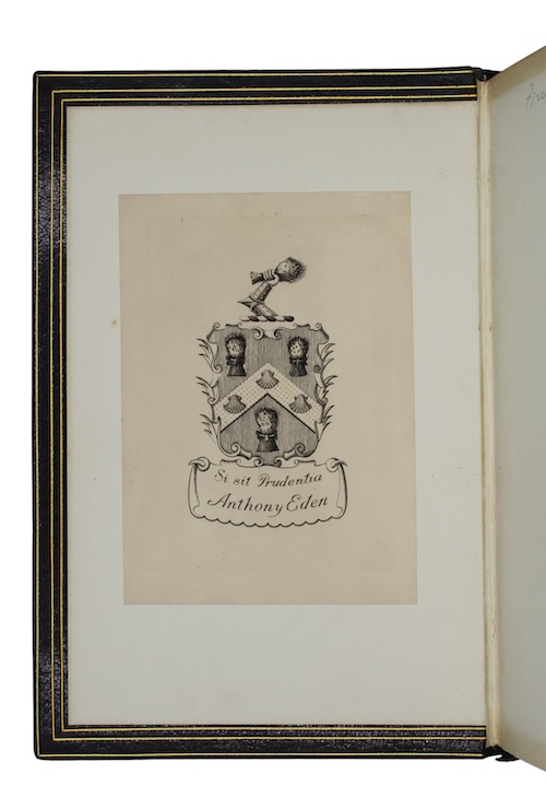 [6], 182pp, [2]. With a half-title. Bound for Bumpus (stamp-signed on rear turn-in) in contemporary black crushed morocco, tooled in gilt and blind, T.E.G. Original publisher's green cloth board covers bound in. Armorial bookplate of Anthony Eden to FEP.