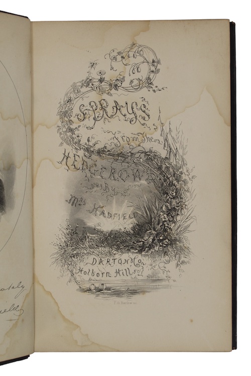 xii, 222pp. With a half-title, an engraved portrait frontispiece, and an additional engraved title page executed by T. O. Barlow. Original publisher's richly gilt-tooled calf, A.E.G. Lightly rubbed, upper joint split. Recent bookplate of Robert J. Hayhurst to FEP, frontispiece and engraved title damp-stained. A presumed presentation copy, inked inscription to FFEP: 'Henry Barlow / with the love of his affectionate / Cousin Lizzy / Liverpool / 4. 14. 50'.