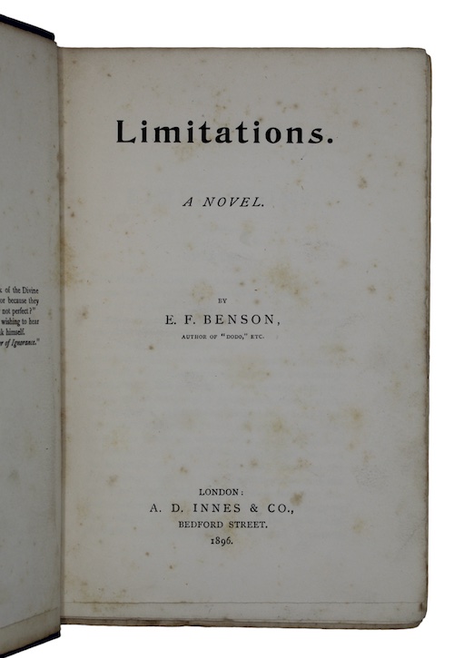 E. F. Benson (1867-1940) was an extremely prolific English writer, completing over fifty novels, four novel series, short stories, plays, biographies, and other non-fiction works on subjects as varied as golf and grave digging. His last work, his third autobiography, was delivered to his publisher just ten days before his death.