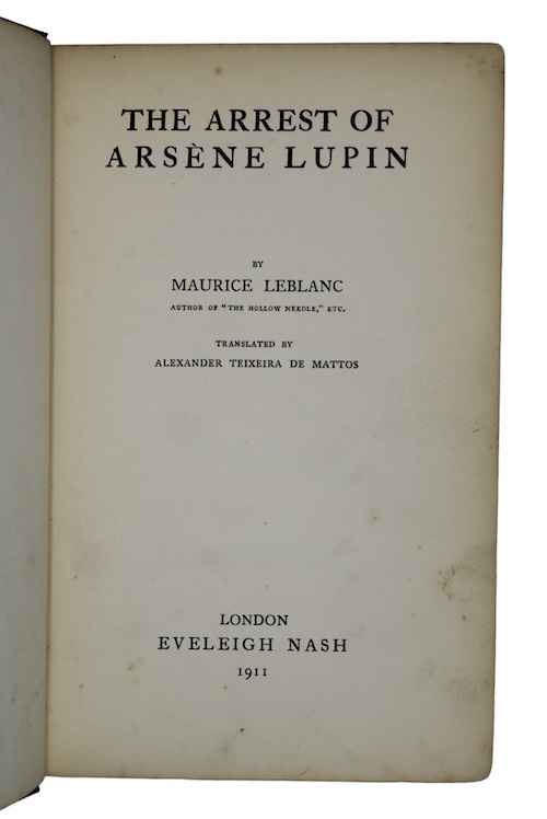An early reprint of the Alexander Teixeira de Mattos translation of Arsène Lupin contre Herlock Sholmès (1909), under a new title for Eveleigh Nash.