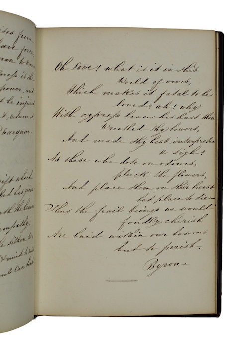 A late Georgian manuscript commonplace, in a single legible hand, comprised predominantly of texts concerning the female character, marriage, love, and virtue.