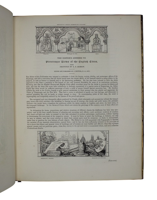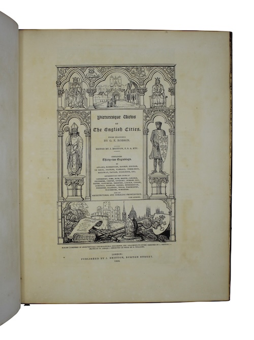 A particularly handsome copy of the sole edition of celebrated antiquary and topographer John Britton's (1771-1857) suite of superlative plates, engraved after paintings by watercolour artist George Fennell Robson (1788-1833), one of a number of money-spinning volumes with mass-produced steel engravings he published in the final decades of his life.