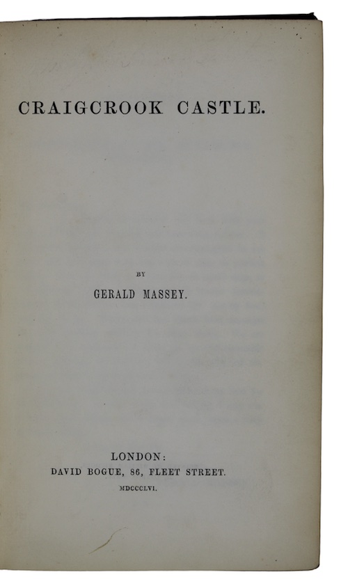 The first edition of minor Victorian poet, social reformer, and Egyptologist Gerald Massey's (1828-1907) blank verse epic that 'may be read as a continuous Poem, or divided into separate Poems'.