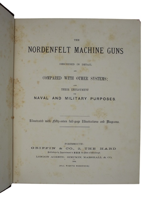 The first edition of a lavish promotional publication for Swedish gun designer Thorsten Nordenfelt's (1842-1920) firearms.