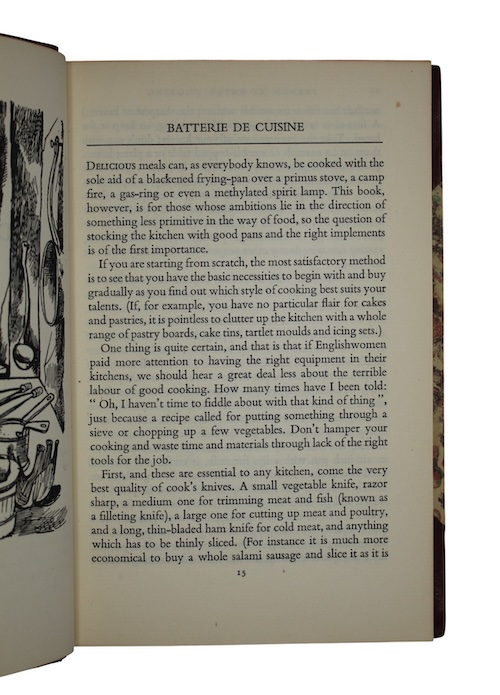 Her second published book, following on from the immensely successful A Book of Mediterranean Food (1950), French Country Cooking introduced the British public to the delectable recipes commonly cooked in rural France; a public no doubt hungry for culinary indulgence at a time when rationing was still in force.