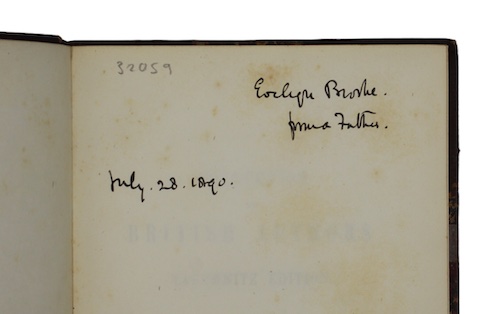 An attractive edition of Dante Gabriel Rossetti's (1828-1882) Ballads and Sonnets, given to Evelyn Brooke by her father Stopford alongside a collection of Rossetti's Poems. Founder of the Pre-Raphaelite brotherhood, Rossetti was a favourite of Brooke, who would later publish 'A Study of Clough, Arnold, Rossetti and Morris' in 1908, going so far as to assert that 'there are no love-sonnets in English Literature which in concentrated thought approach those of Shakespeare, except Rossetti’s'.