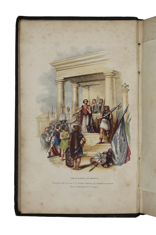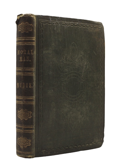 The first edition of Man, as a moral and accountable being, a volume by British journalist and naturalist Robert Mudie (1777-1842). The colour engraved frontispiece depicts the judgement of Brutus, aligning with the book's themes of moral evaluation and the universality of sin.